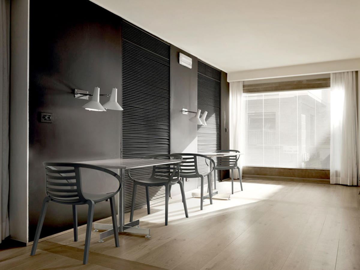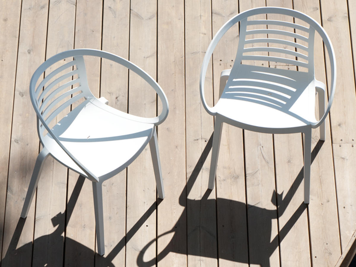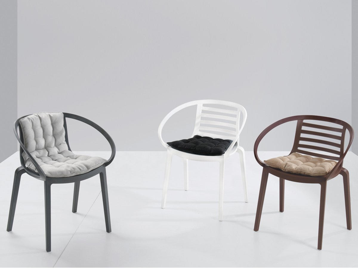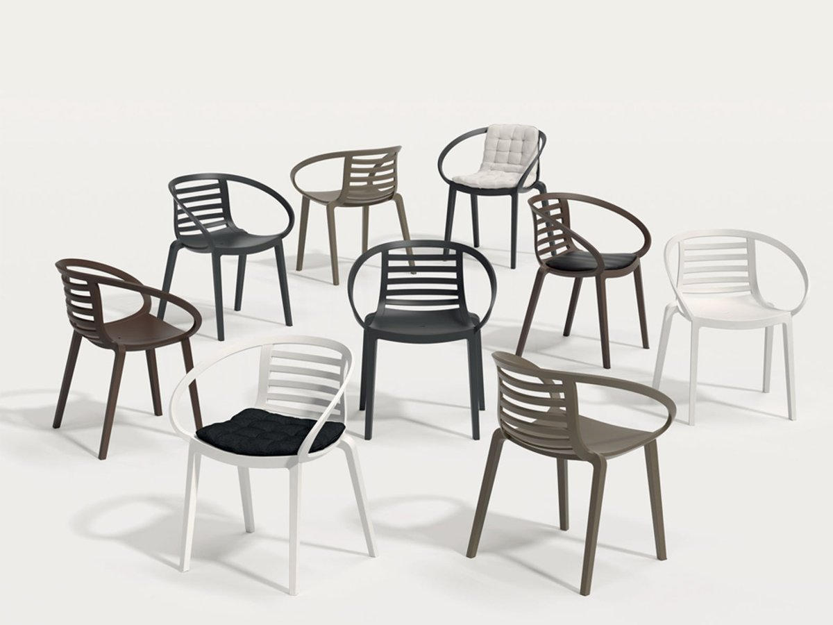 Stolica MAMBO proizvodi se tehnologijom injekcijskog prešanja staklenih vlakna ojačanih polipropilenom. Ergonomski oblik odgovara bilo kojem okruženju. Zahvaljujući posebnim materijalima, ova je stolica savršen izbor za vanjske prostore. Otporna je na UV zrake. Na stolicu je moguće ugraditi jastučiće za sjedenje u raznim bojama.